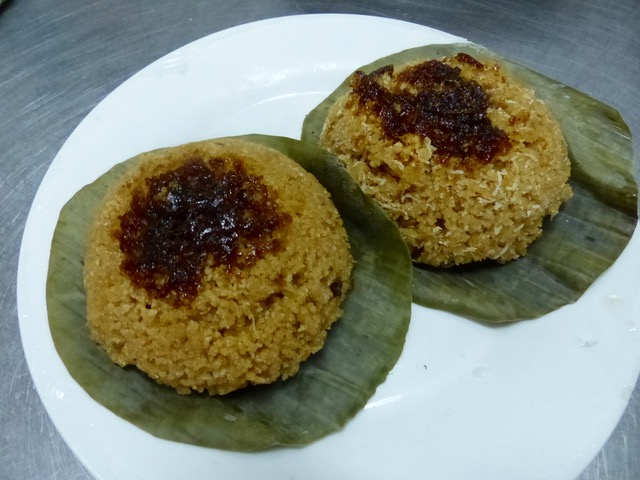 I imagine recreating this marvellous treat in a modern steamer using small wire colanders as mold. We have a similar treat down our way, not as buxom perhaps but still utterly delightful, using grated cassava mixed with glutenous rice and an even more colourful version (also popular in Pampanga) prepared with chunks of local squash, unpeeled with seeds included.
