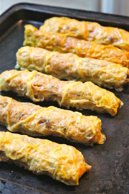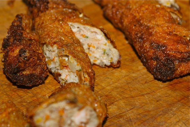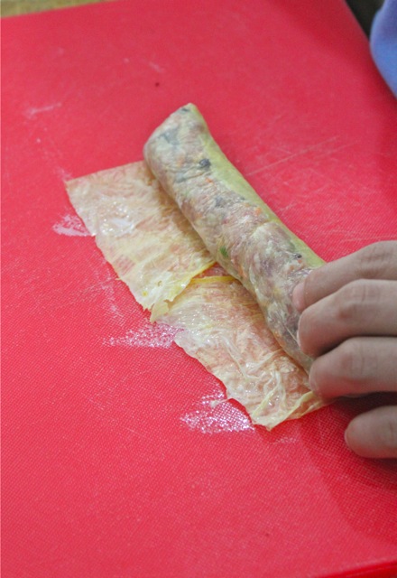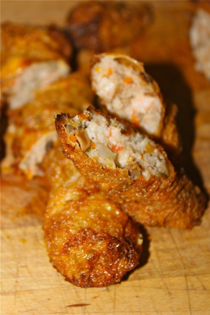 If you want uniform length and girth, may I suggest using a piping bag, MM…you can make an assembly line and finish wrapping even a hundred of those in no time at all. In addition, a little fish paste added to your filling (store bought or home made) will do wonders as well.