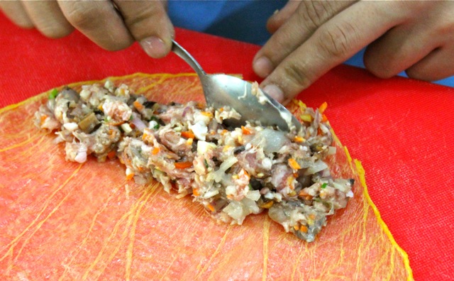 I agree with the steaming and frying after, its really moist. BTW, try using minced pork because it’s more to our liking (i’m half-chinese). Then on the five-spice powder, make it 1/2 to 2 tsp to make it bit robust, authentically chinese-smelling :D And finally on the caul fat wrapper, my a-ma (grandmother) who used to make quekiam, wrapped the mixed meat in layers of caul fat (or more to make sure it won’t break). And for the sauce, make a spicy asado sauce. Hope to be of great help with your chinese food adventures