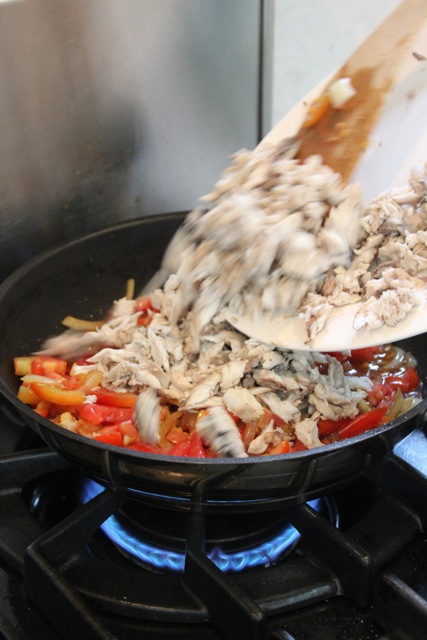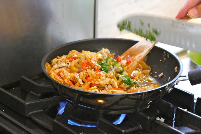 I added some chopped wansoy or coriander for color and flavor, but this is optional for those folks who have a distinct dislike for coriander. Toss gently so as not to over smush the fish. Let this cool for several minutes.