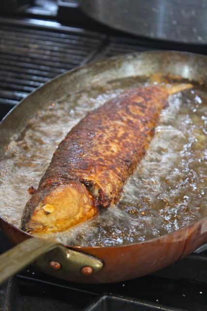 Fry in vegetable oil or lard. Copper fishpan not necessary. Aside for blog regulars: (But good for stirring up elitist feelings in some readers; yes, I am pretty sure “it” still comes back to read posts on this blog after 6-7 years since the first fishpan incident. Tries to disguise “its” location but bad diction and unique phrasing is usually a dead giveaway — thankfully most all of the vitriol ends up in spam, never viewed nor read. If “it” wanted records of that ridiculous exchange many years ago expunged from the internet, all “it” had to do at the time was apologize for making the libelous, defamatory comments targeted at me and other commenters. Too much pride to do that then and a few years later tried again, so now see what comes up when you google the name you used in those comments? A ptential professional nightmare, I can imagine, even with a new married name tacked on. At the time, I emailed the person at the provided email address and they refused to retract their comments nor respond to the email, which did NOT bounce back, so I presume it was delivered. Another example or lesson for thinking about what what you say on the world wide web… Or in any electronic written communications for that matter.)