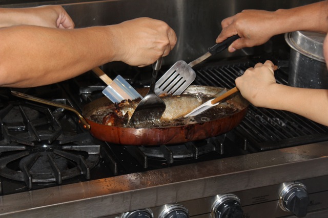 i laughed when i tried to picture how MM and his companion looked, while they try to avoid the oil splatters as they turn over the bangus… :)