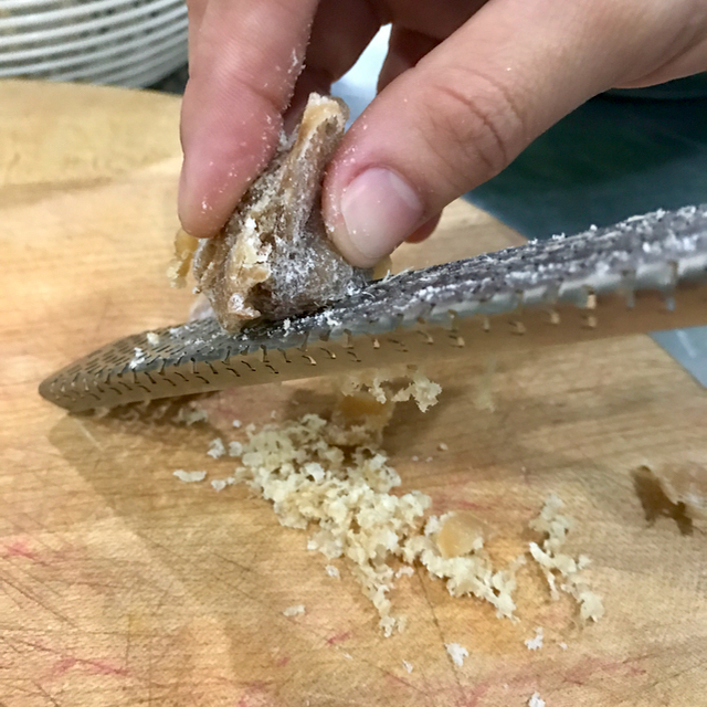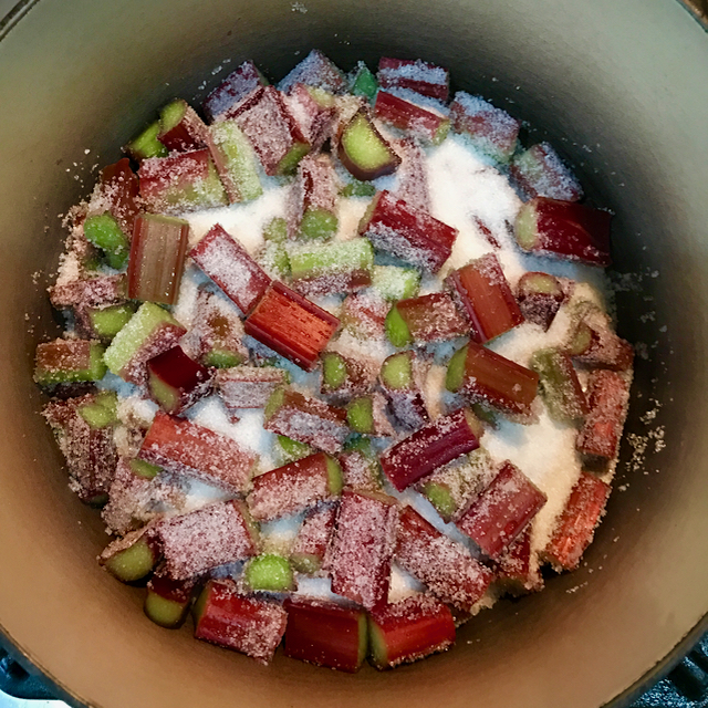 I added some grated candied ginger for that certain hint of flavor other than the sharp rhubarb, but just make sure it is finely grated and distributed throughout your fruit. Put the pot over a medium-high heat and when it reaches a boil, turn the heat down and cook for just 4-5 minutes more until the rhubarb is partially mushy but some slices are still visibly whole. Turn the heat off. Do not overcook.
