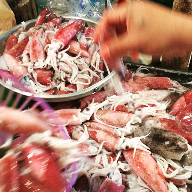 Hit the local markets and stock up on whatever looks fresh… young squid, fresh fish, prawns, shrimp, etc.