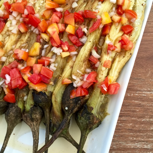 An eggplant and tomato salad for that texture and acidic contrast to the incredibly fresh, slightly briny seafood. And yes, somewhere off camera is a nice big bowl of steamed rice. In this case, no utensils required. But Mrs. MM had a fork and knife. :)