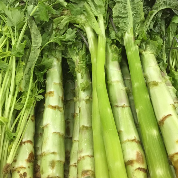 Indeed. So clean! The mustardy plant looks like stems of lettuce plants that have bolted. I saw that in the huge Korean market here,