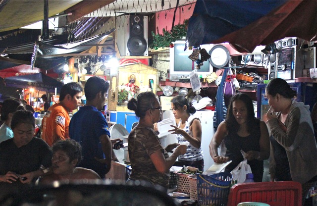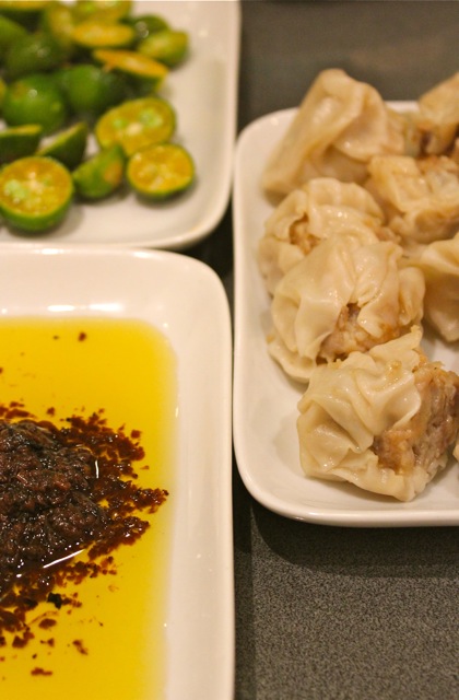 Business was extremely brisk, and several customers lined up to purchase 3, 5 or 10 pieces, either to eat at makeshift tables out front, or to take home. Folks around the world (and all those in China in particular) might be mortified to find out that Filipinos have taken a classic dimsum dish, meant for noshing without rice, and have made it the primary viand in a meal of siomai and rice, with lots of soy sauce, chili oil and kalamansi juice as a dip.