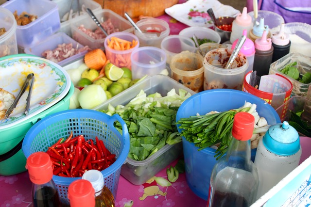 Mis en place. And a COMPLETE absence of flies, despite the fish sauce and other pungent and sweet ingredients.