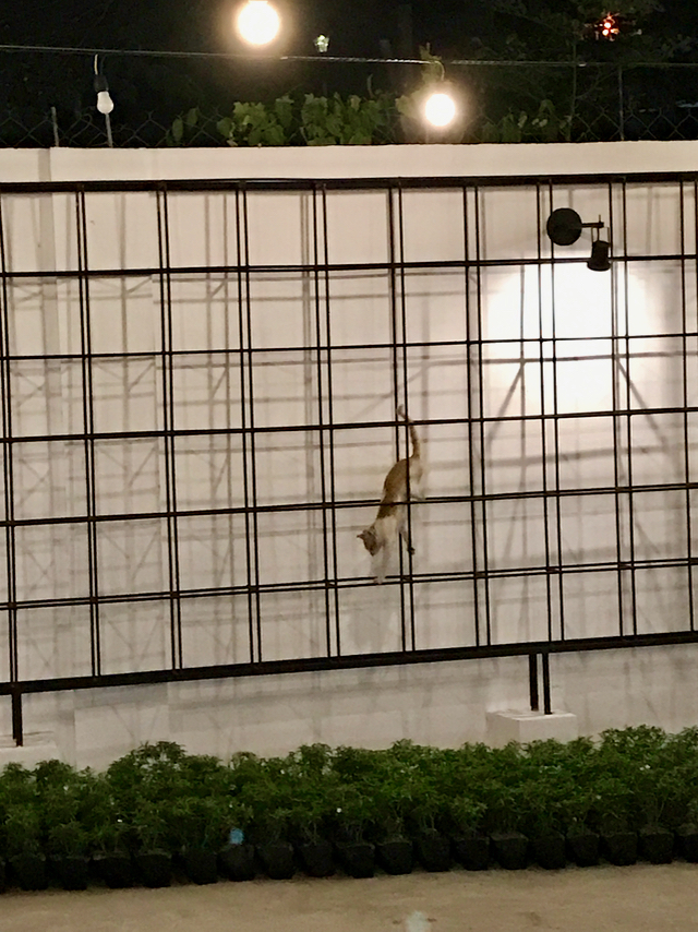 Meanwhile, a bunch of cats were making their presence felt, and on one “trial” evening, two cats decided to fornicate noisily right on top of our roof directly above the dining room, and when I went out to look at all the ruckus, I watched in amazement as they put on a porno-worthy performance that was youtube worthy. They somehow lost their footing, tumbled in extreme ecstasy, and literally rolled off the roof STILL DOING IT, only to land on their feet!!! If I had the presence of mind to take my phone out and video the whole thing I would have had a viral video for sure…