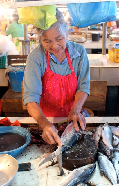Manang Puring must be well into her seventies (I didn’t want to ask), if not early eighties. She is the sole fishwife at the Nasugbu market that can quickly and neatly separate a bangus skin from its flesh without piercing or damaging the skin. Here, is how she did it.