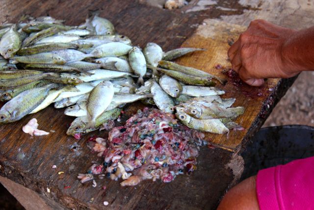 Last Friday I took a day trip up to Bogo, in Northern Cebu, specifically to identify suppliers of seafood to supply our restaurants and as a result, help the storm ravaged areas get back on their feet. The more products we can purchase up North, the better for the residents there. And sea produce is an excellent way to go directly to the source and to provide income for fishermen and their families… The primary objective was to find a supplier of three types of danggit or rabbitfish products which is abundant in the area — the basin in the photo up top is filled with freshly caught danggit.