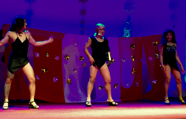 With massive thighs and wicked tattoos, the guys put in a serious attempt for the first prize with this number.
